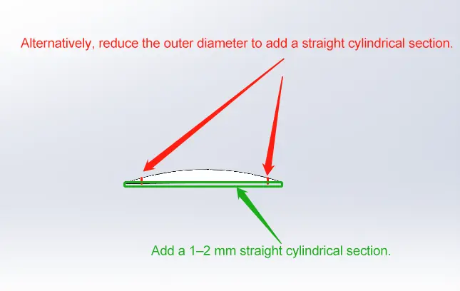 1. Improved fixturing stability by adding a 1–2 mm straight cylindrical base